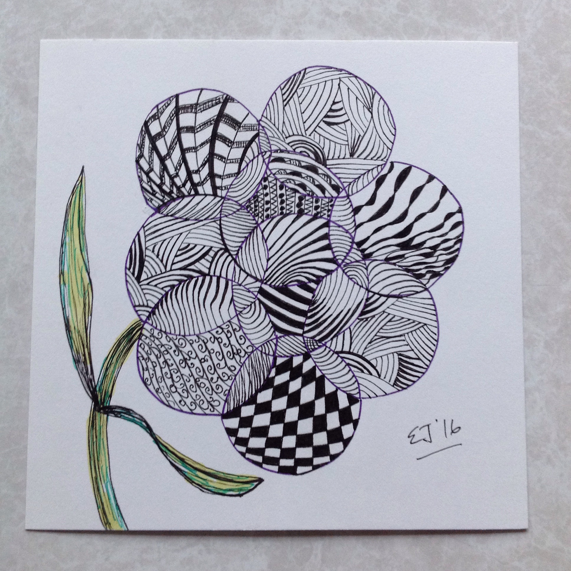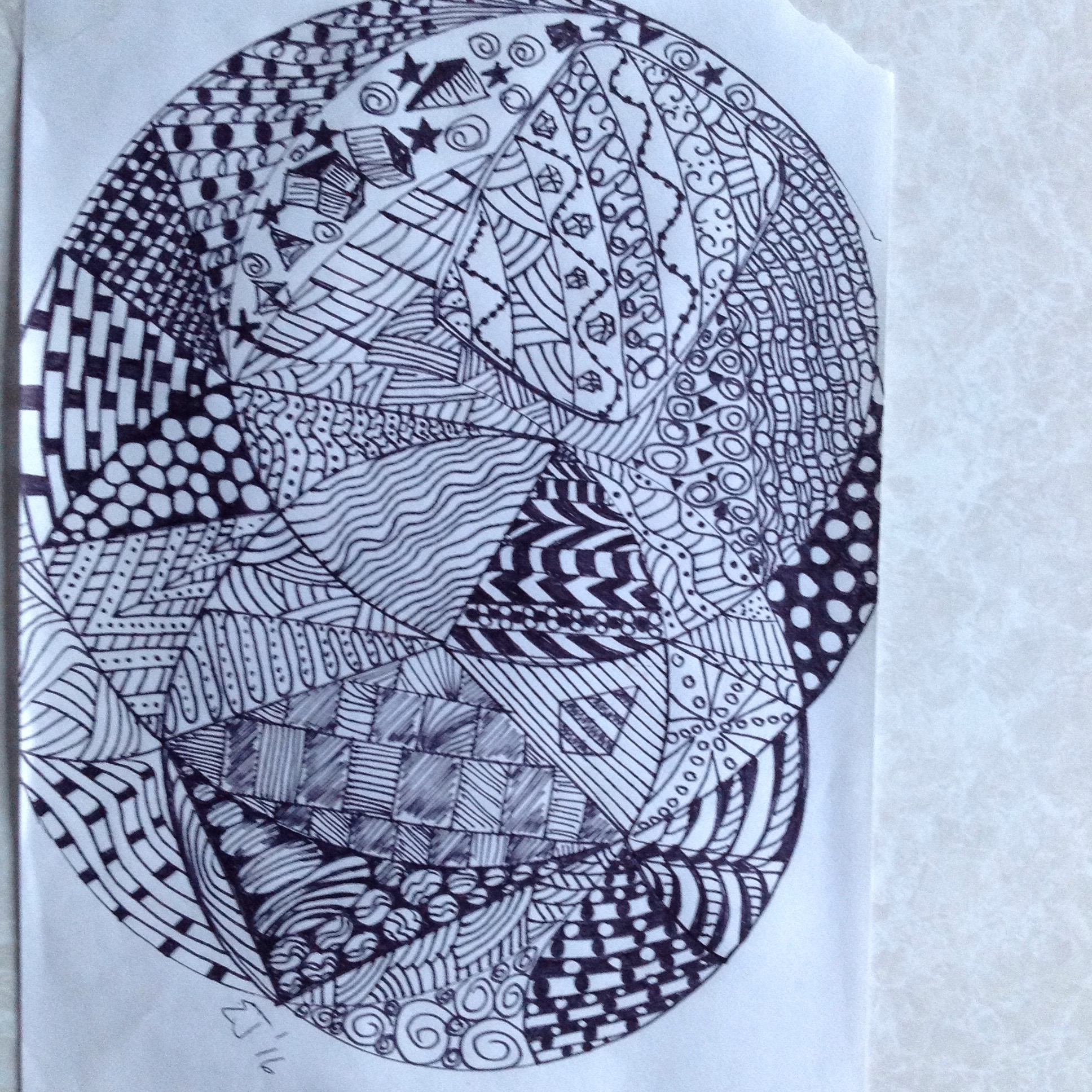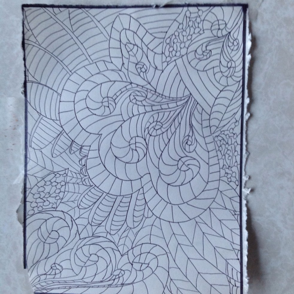 I started with just a ball point and drew this, inspired by all my adult colouring books:
